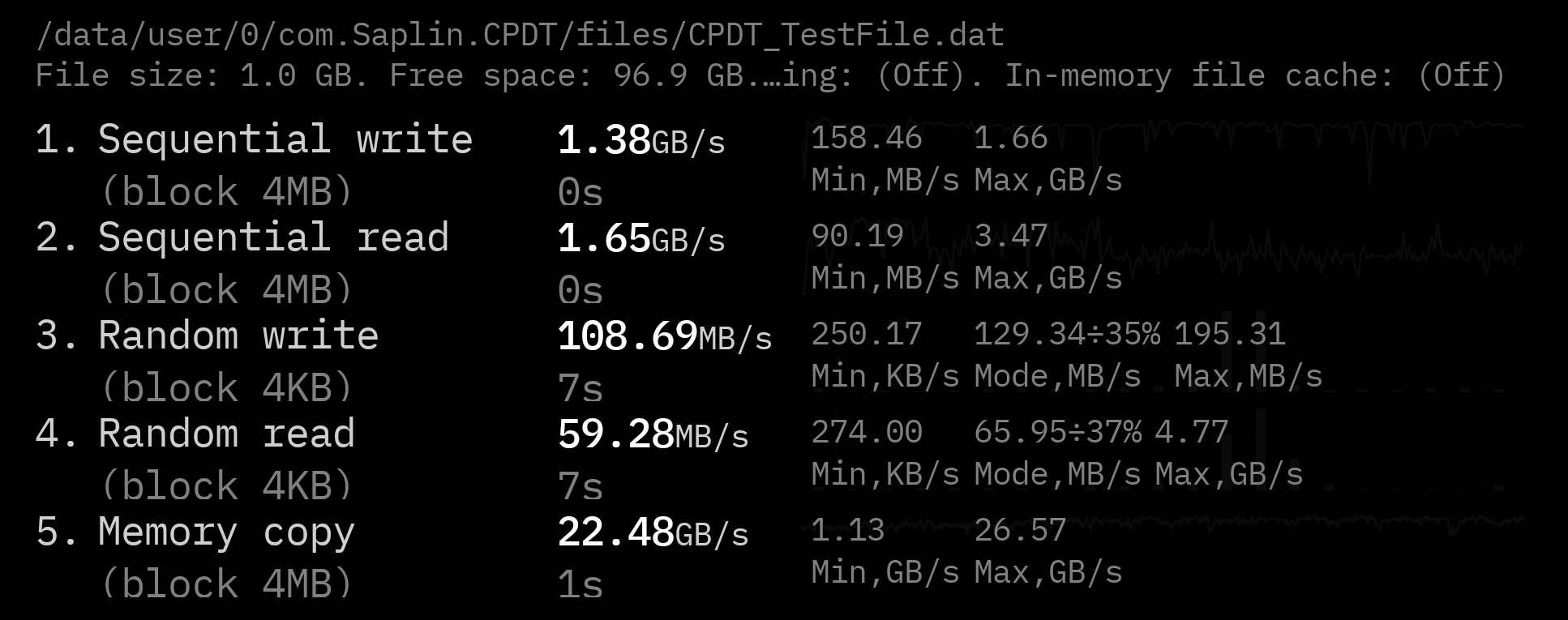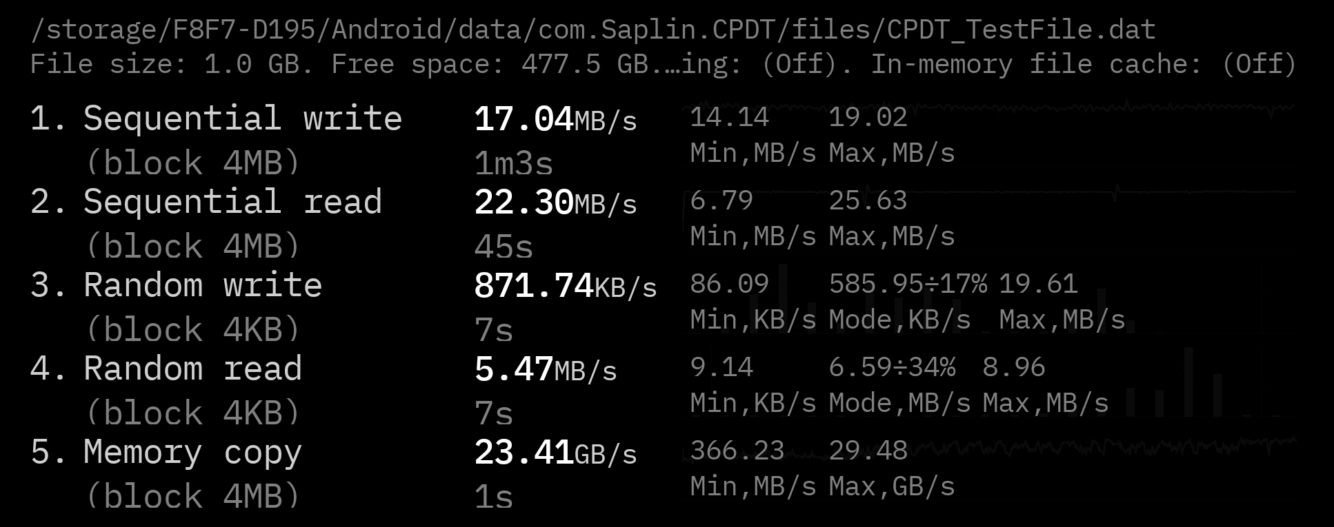 نکتهی دیگری که دوست دارم، اسلات کارت TF است که از کارتهای microSD تا ۲ ترابایت پشتیبانی میکند. من یک کارت microSD سامسونگ V30 را اینجا قرار دادم و سرعت خواندن و نوشتن را آزمایش کردم. در مقایسه با حافظهی داخلی UFS، سرعت این کارت SD پایین است.